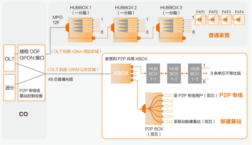 通過(guò)ODN 3.0解決方案提供的P2P BOX可以直接輸出雙芯光纜到P2P專(zhuān)線用戶和移動(dòng)基站,特別適合綜合運(yùn)營(yíng)商進(jìn)行網(wǎng)絡(luò)布局和充分利用骨干光纜資源。